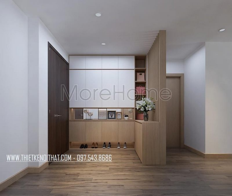Mẫu cửa chính của chung cư được thiết kế theo một kiểu dáng hiện đại và tiết kiệm tối đa không gian trong chung cư nhỏ.