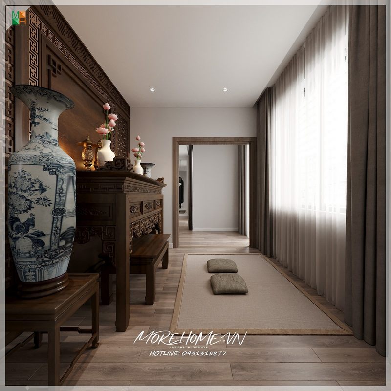 Đôn thờ bằng gỗ óc chó hình dạng giống như chiếc ghế ngồi không tựa thông thường được sử dụng như một phụ kiện trang trí cho phòng thờ.