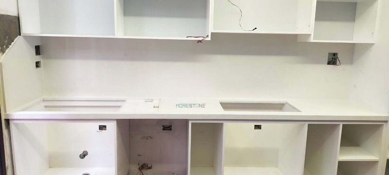 Mẫu thi công đá ốp Himacs trắng sang trọng và tinh tế được áp dụng cho các công trình như chung cư, nhà phố, biệt thự.